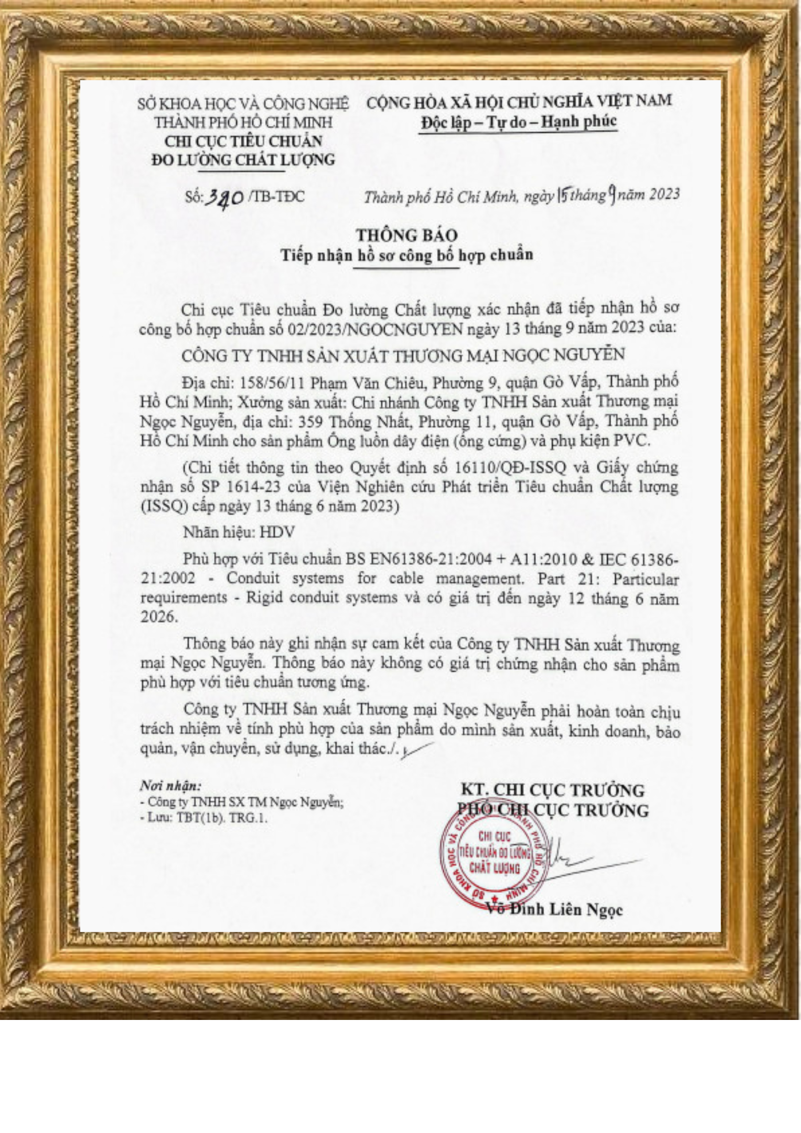 Công ty TNHH Sản Xuất Thương Mại Ngọc Nguyễn là đơn vị chuyên sản xuất và cung ứng ống luồn dây điện và phụ kiện PVC cao cấp với công nghệ hiện đại nhập khẩu từ Đài Loan, Nhật Bản và Châu Âu. Năng lực sản xuất mỗi tháng trên 1.5 triệu mét ống các loại cùng với ruột gà và phụ kiện kèm theo.